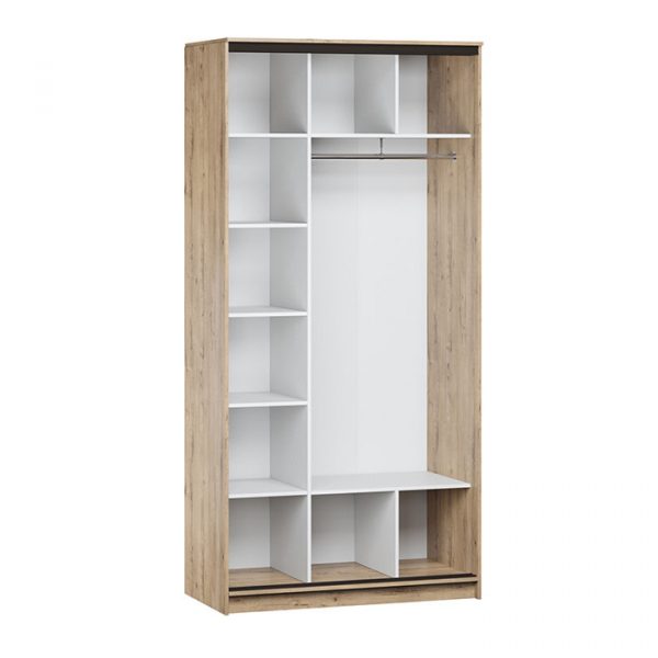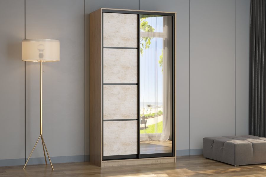 Благодаря эффектному сочетанию светлого оттенка корпуса с темными профилями шкаф-купе «Феррара» выглядит строго и стильно. Его дизайн универсален и подойдет для любой комнаты: гостиной, спальни или прихожей.