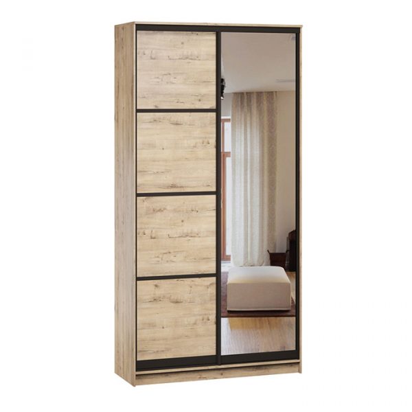Высокое зеркало во всю высоту шкафа повышает функциональность модели. Отражающая поверхность света не только позволяет оценить внешний вид перед выходом, но и визуально расширяет пространство даже в небольшом помещении.