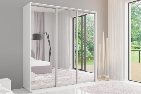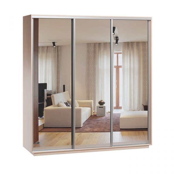 Шкаф-купе «Монако» – это вместительная конструкция для хранения одежды, обуви, предметов гардероба и других вещей. Три больших зеркальных во весь рост фасада станут великолепным дополнением в комнате или прихожей. По бокам двери находятся ленты-щетки, которые предотвращают попадание пыли внутрь шкафа и обеспечат бесшумное открывание и закрывание двери. За дверью вас ждет продуманное внутреннее наполнение: глубокие полки и отдельный отсек со штангой для вешалок. Какие еще преимущества имеет такая мебель? Рассмотрим основные из них: