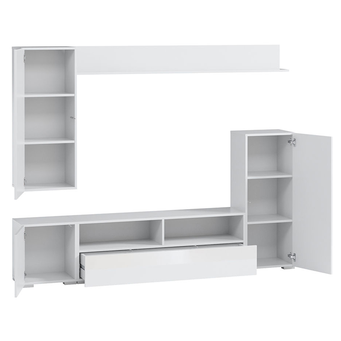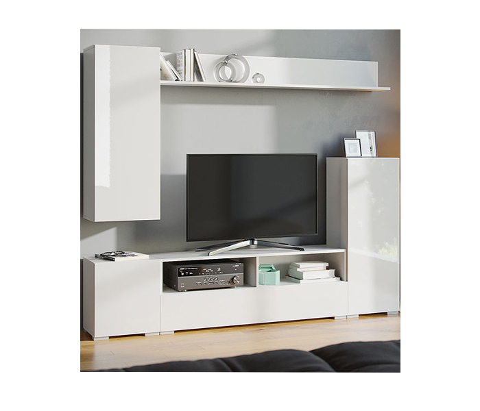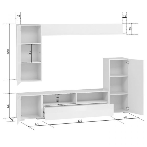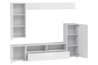 Замовник може самостійно вибрати габарити стінки, кількість та розміри полиць, висоту отворів. А система Push to open гарантує зручність при відкритті фасадів.