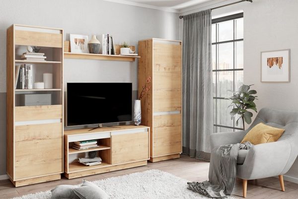 Модульна вітальня «Кентуки» за рахунок окремих елементів витончена та функціональна. Сучасне колірне рішення з прозорими фасадами додасть новий стиль вашому інтер’єру. Використовуйте кожен елемент окремо або створіть неповторну комбінацію. А якщо захочеться змін – будь-якої миті можна пересунути модулі або додати нові елементи вітальні.