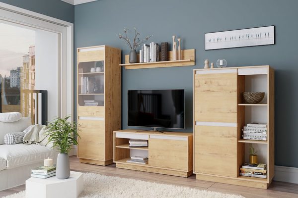 Модульна вітальня «Кентуки» за рахунок окремих елементів витончена та функціональна. Сучасне колірне рішення з прозорими фасадами додасть новий стиль вашому інтер’єру. Використовуйте кожен елемент окремо або створіть неповторну комбінацію. А якщо захочеться змін – будь-якої миті можна пересунути модулі або додати нові елементи вітальні.