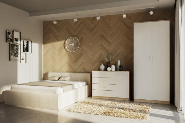 Дводверна шафа «Родос» – досить містка і підходить як для спальні, вітальні так і для передпокою. Простора система зберігання та стандартне комбіноване наповнення систематизує зберігання: від одягу та взуття до постільних речей та аксесуарів. Які ще переваги мають такі меблі? Розглянемо основні з них: