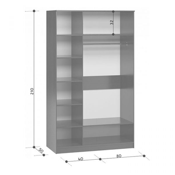 Шафа обладнана полицями з одного боку і штангою з іншого. Усередині знайдеться місце як на вішалках, так складених речах. Класична ширина та глибина конструкції робить модель гранично місткою.