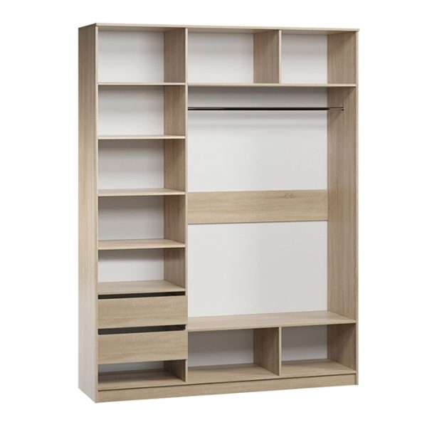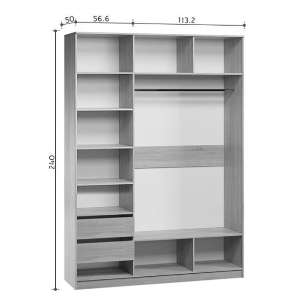 Шафа обладнана полицями з одного боку і штангою з іншого. Усередині знайдеться місце як на вішалках, так складених речах. Класична ширина та глибина конструкції робить модель гранично місткою.
