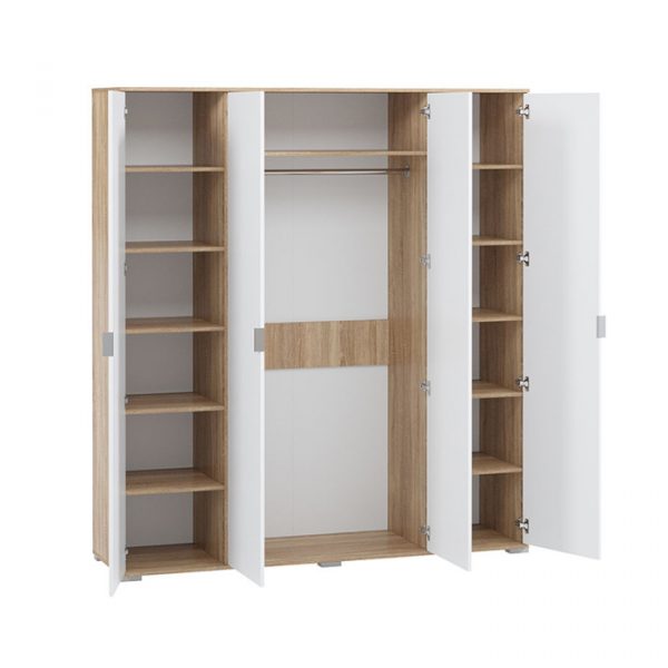 Шафа обладнана штангою по центру, а також полицями по обидва боки шафи. Усередині знайдеться місце як на вішалках, так складених речах. Простора ширина та глибина конструкції робить модель гранично місткою.