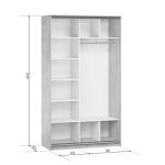 Замовник може самостійно вибрати габарити шафи, кількість та розміри полиць, висоту прорізів, наявність антресольної частини, наявність та кількість ящиків.